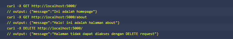 // output: {"message":"Halaman tidak dapat diakses dengan DELETE request"}